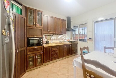 La planta baja consta de un hermoso y luminoso salón comedor, un bonito despacho, cocina totalmente amueblada de estilo rústico, con dos grandes alhacenas y techo abovedado de vigas, un gran lavadero y una hermosa despensa.